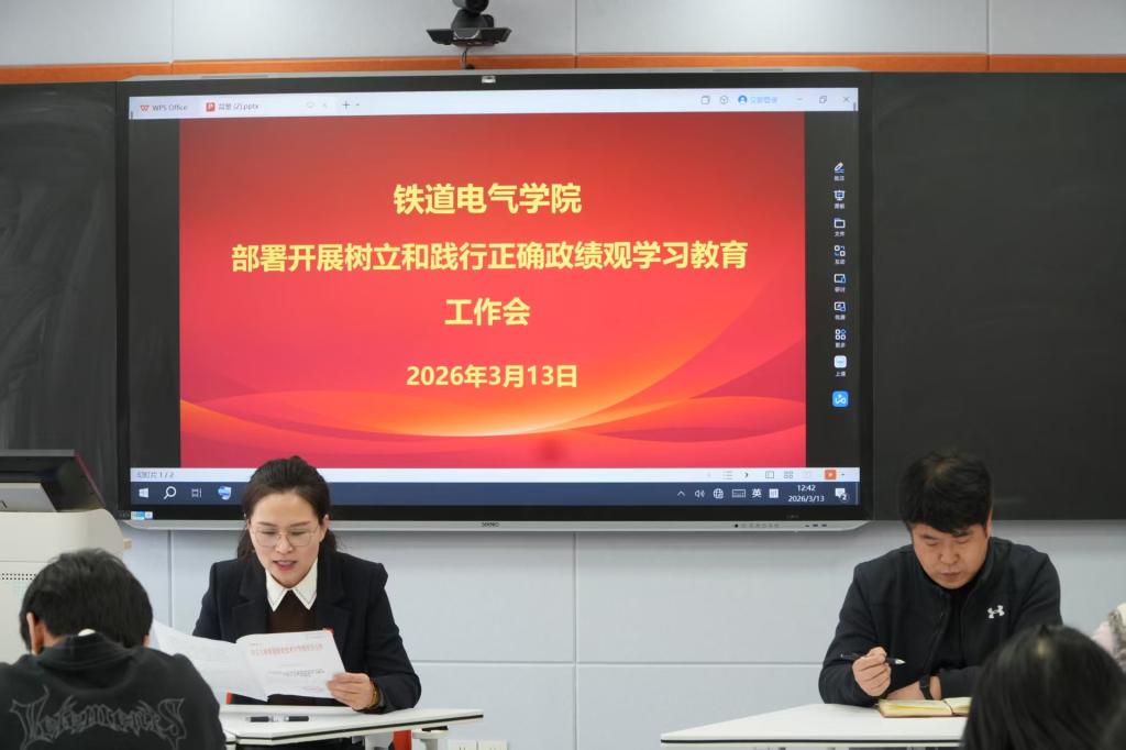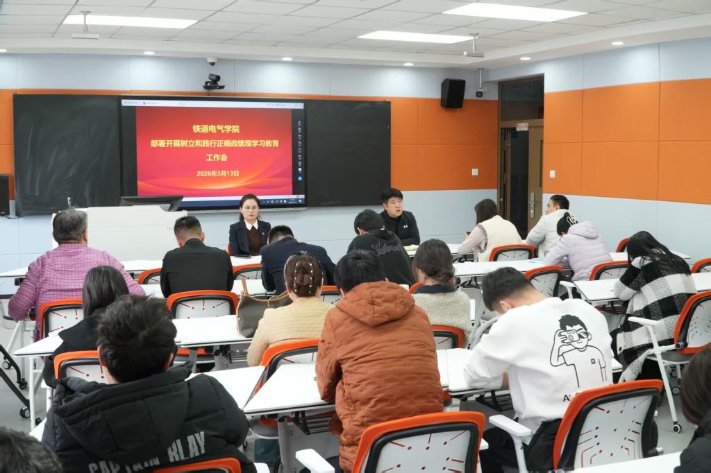 3月13日,铁道电气学院召开树立和践行正确政绩观学习教育工作会,会议由党总支书记王婧婧主持,学院全体教师参加。