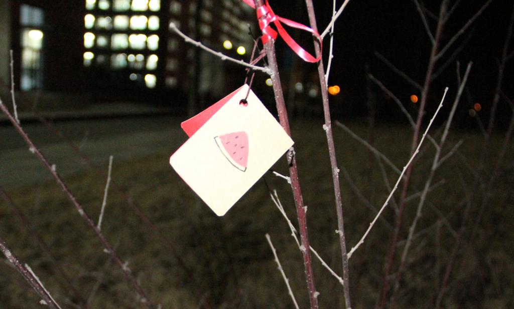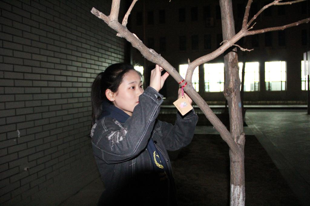 电气学生利用自己的课余时间,制作了手工环保小卡片,并将它挂在学校道路两旁的大树上,进行环保宣传,以此来激发同学们重视绿化、爱护校园、美化环境的环保思想,营造良好的校园环境,以实际行动来践行“绿水青山就是金山银山”的理念。