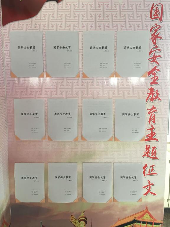 4月11日,分院在教学楼六楼大厅进行了主题征文评比,并张贴了国家安全宣传展板,加强国家安全教育文化阵地建设和导向宣传作用。