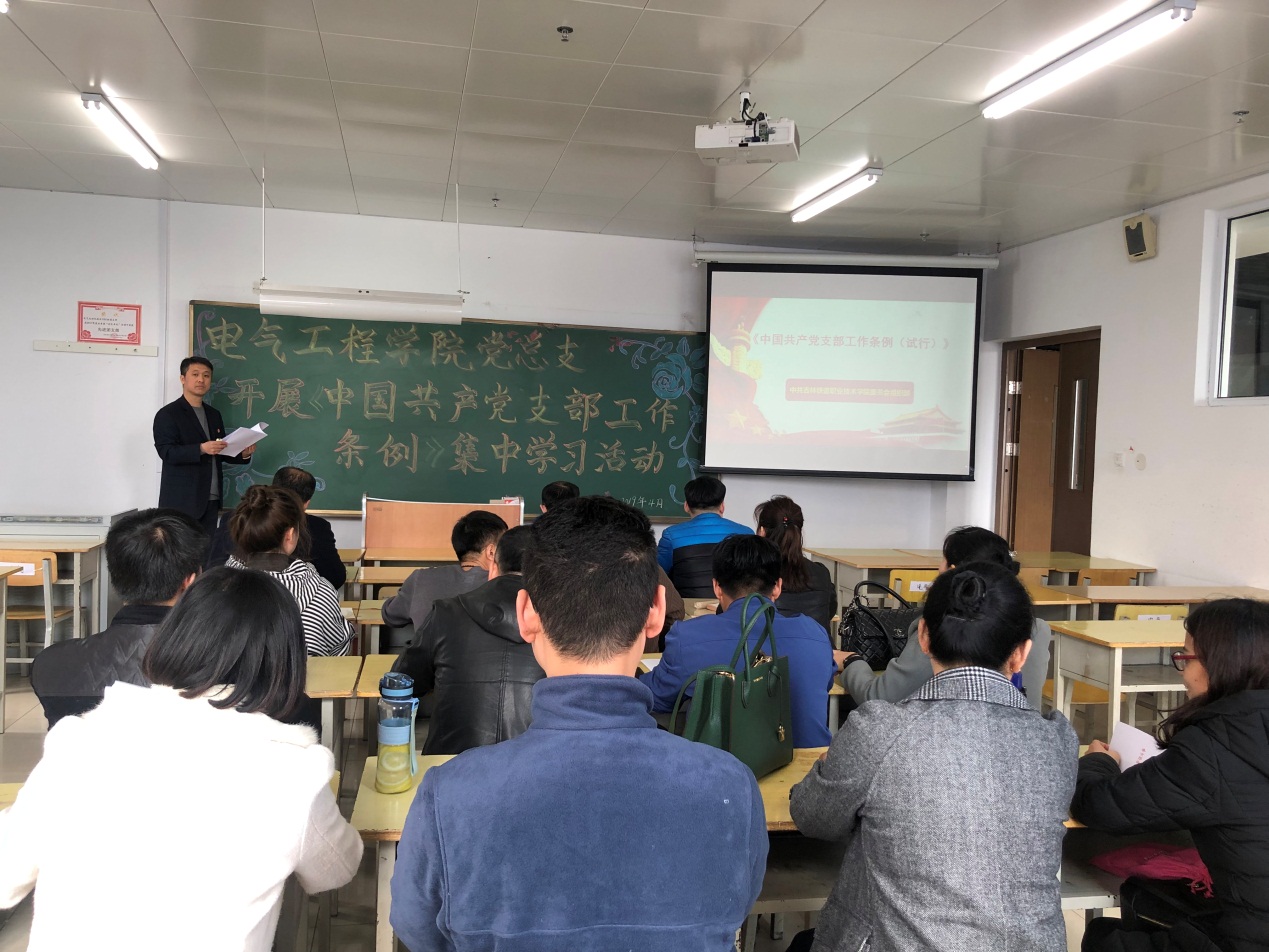 2019年4月8日,电气工程分院党总支组织分院全体党员在教学楼620开展学习《中国共产党支部工作条例(试行)》。