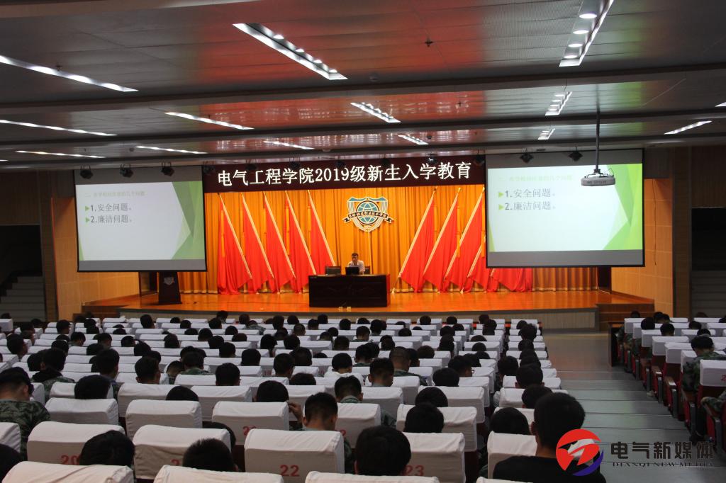 为让新生了解大学学习、生活的特点,感悟大学精神,认识自身成长成才途径,尽快融入到大学校园生活,电气工程学院于9月9日开展了2019级新生入学教育大会。电气工程学院党总支书记刘振波、院长闫纲、团委书记金晶以及2019级全体新生参加了会议,会议由分团委书记金晶主持。