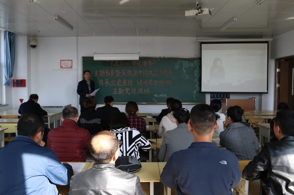 10月16日,学院开展了“传承红色基因,倾听历史回响”主题活动,学院党总支副书记刘振波为大家讲述了共产主义战士曾志同志的感人事迹,通过了解曾志同志为中国共产党不懈奋斗的辉煌人生,让所有党员心生敬仰,充分感受到了革命战士的崇高理想和坚定信念,唤起了作为一名共产党员的初心和使命。随后,全体教师党员进行了关于《党章》、《党的十九大报告》知识答卷活动,在常学常新中加强理论修养,在细照笃行中不断修炼自我,在学思践悟中牢记初心使命。最后,全体党员重温了入党誓词,表达了自己为党的事业奋斗终身的决心。
