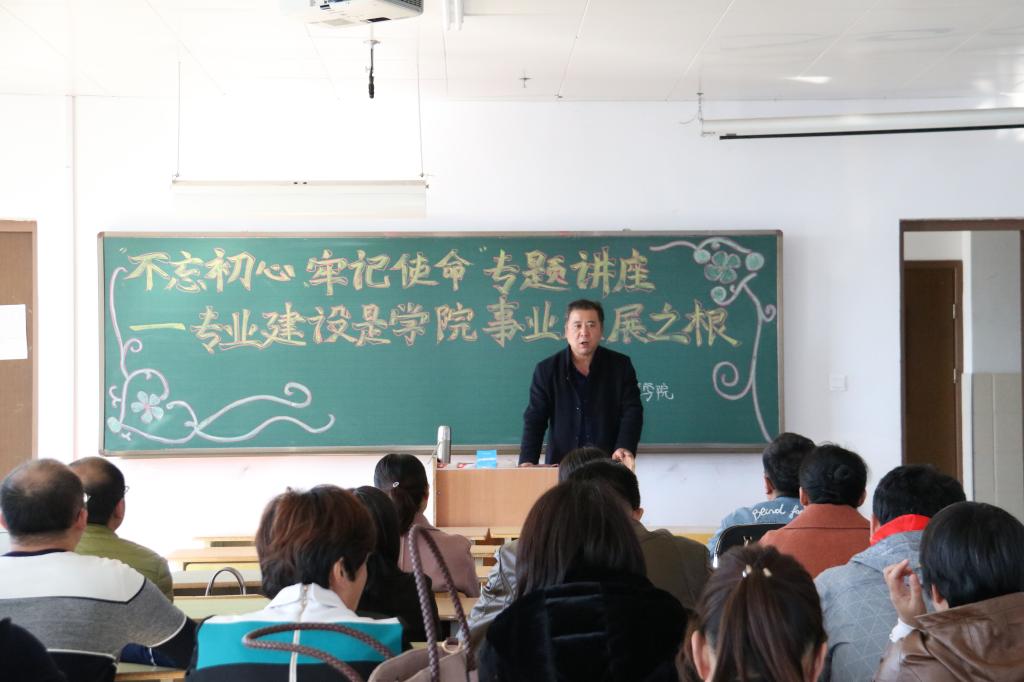 10月31日,电气工程学院院长闫纲结合“不忘初心、牢记使命”主题教育要求,结合学院深化教育教学改革,以《不忘初心、牢记使命——专业建设是学院事业发展之根》为题,给大家上了一堂党课。闫纲指出:教师的初心,就是教书育人,专业建设要落实到教师自身,教师要不断的提高教育教学水平和科研能力,不断的提高工作效率,提升工作质量,有效的促进和加强专业的内涵建设,党员教师更要不忘初心,牢记使命,深入学习,提高认识,发挥先锋模范的带头作用。