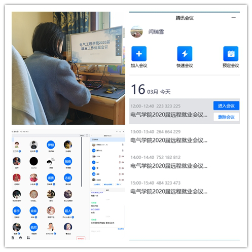 为贯彻落实《教育部关于应对新冠肺炎疫情做好2020届全国普通高等学校毕业生就业创业工作的通知》,将2020届毕业生就业工作落到实处、做出实效,电气工程学院于3月16日下午召开了疫情防控期间就业工作网络会议。针对不同专业和班级,会议共分四场进行,每场会议40分钟。电气工程学院党总支书记刘振波、副书记徐薇、辅导员闫瑞雪、全体2017级未就业学生及部分学生家长参加了会议。