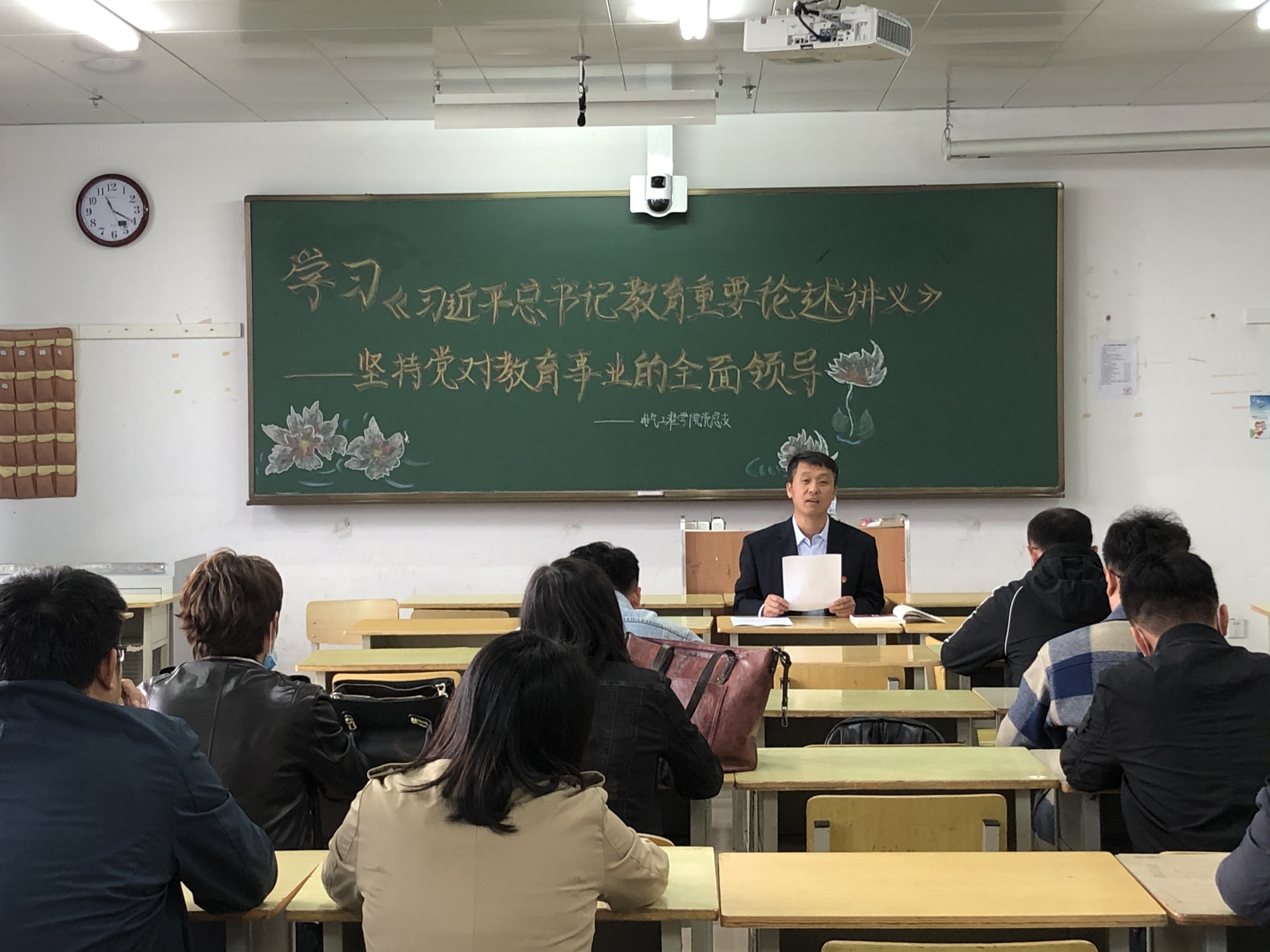 会上,党总支书记刘振波,要求全体教师积极参与2020年“全面从严治党知识答题”活动中,以知识答题活动为载体,进一步加强教师思想道德和党纪国法教育;随后,带领大家共同学习了习近平总书记教育重要论述讲义,他强调要坚持社会主义办学方向,把我们的特色和优势有效转化为培养社会主义建设者和大国工匠的能力。要履行好把方向,管大局,作决策,抓班子,带队伍,保落实的领导责任,健全党对教育事业全面领导的体制机制,并做好大学生的思想政治工作。