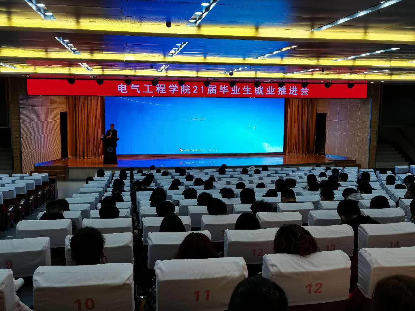 为进一步推进2021届毕业生就业工作,电气工程学院于2020年10月16日在图书馆报告厅召开毕业生就业推进会,党总支书记刘振波,党总支副书记徐薇,2017级辅导员以及未就业全体学生参加会议。