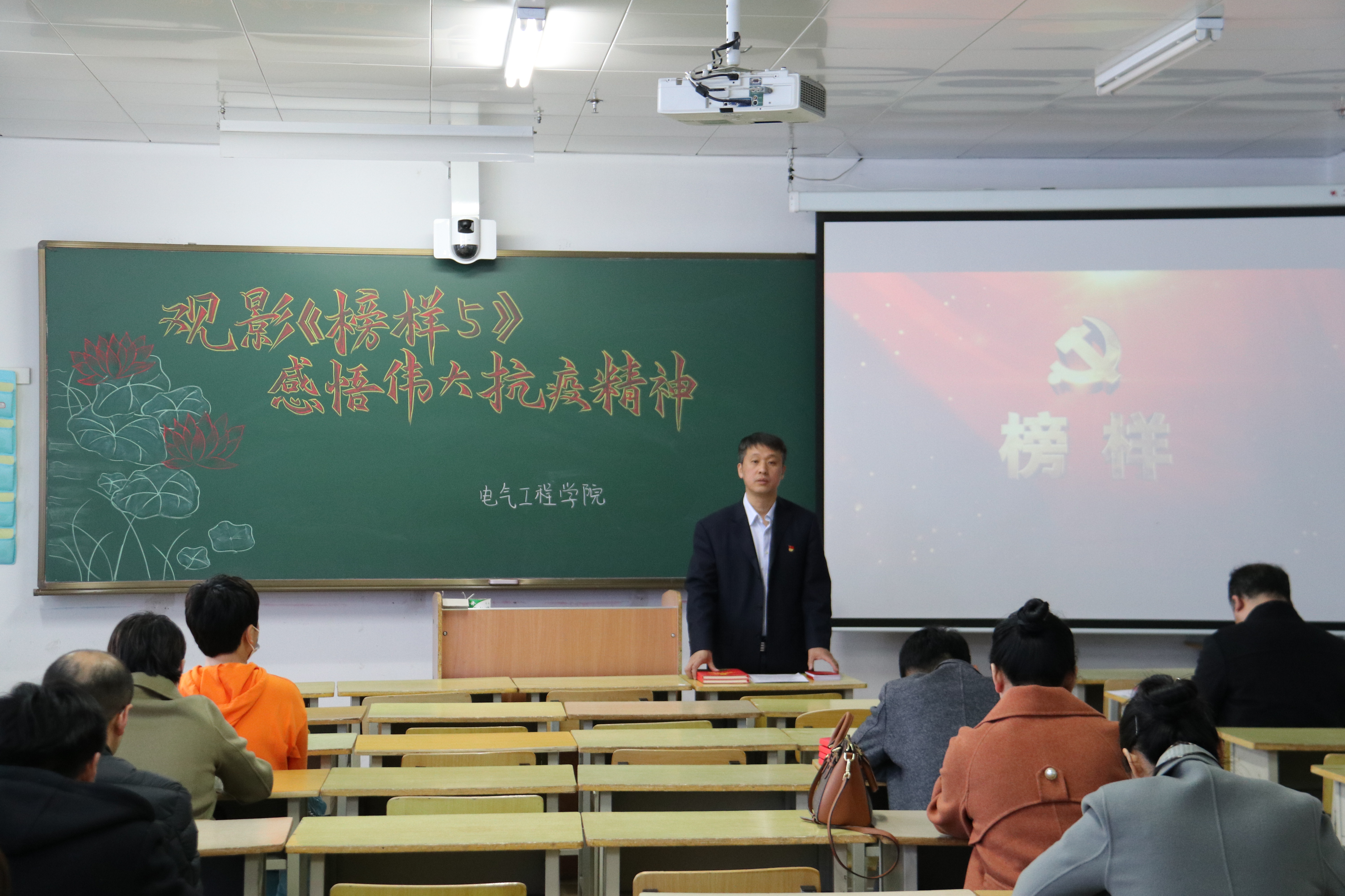 为深入学习榜样精神,发挥党员先锋模范作用,积极学习宣传伟大抗疫精神、充分发挥党员先进典型示范引领作用,2021年3月24日电气工程学院党总支组织全体教师和学生党员开展了“观影《榜样5》,感悟伟大抗疫精神”主题党日活动。分院党总支把组织收看《榜样5》专题节目与党史学习教育结合起来,与立足岗位争当合格党员结合起来,采取了集中观看、交流讨论、撰写学习体会等形式开展学习。