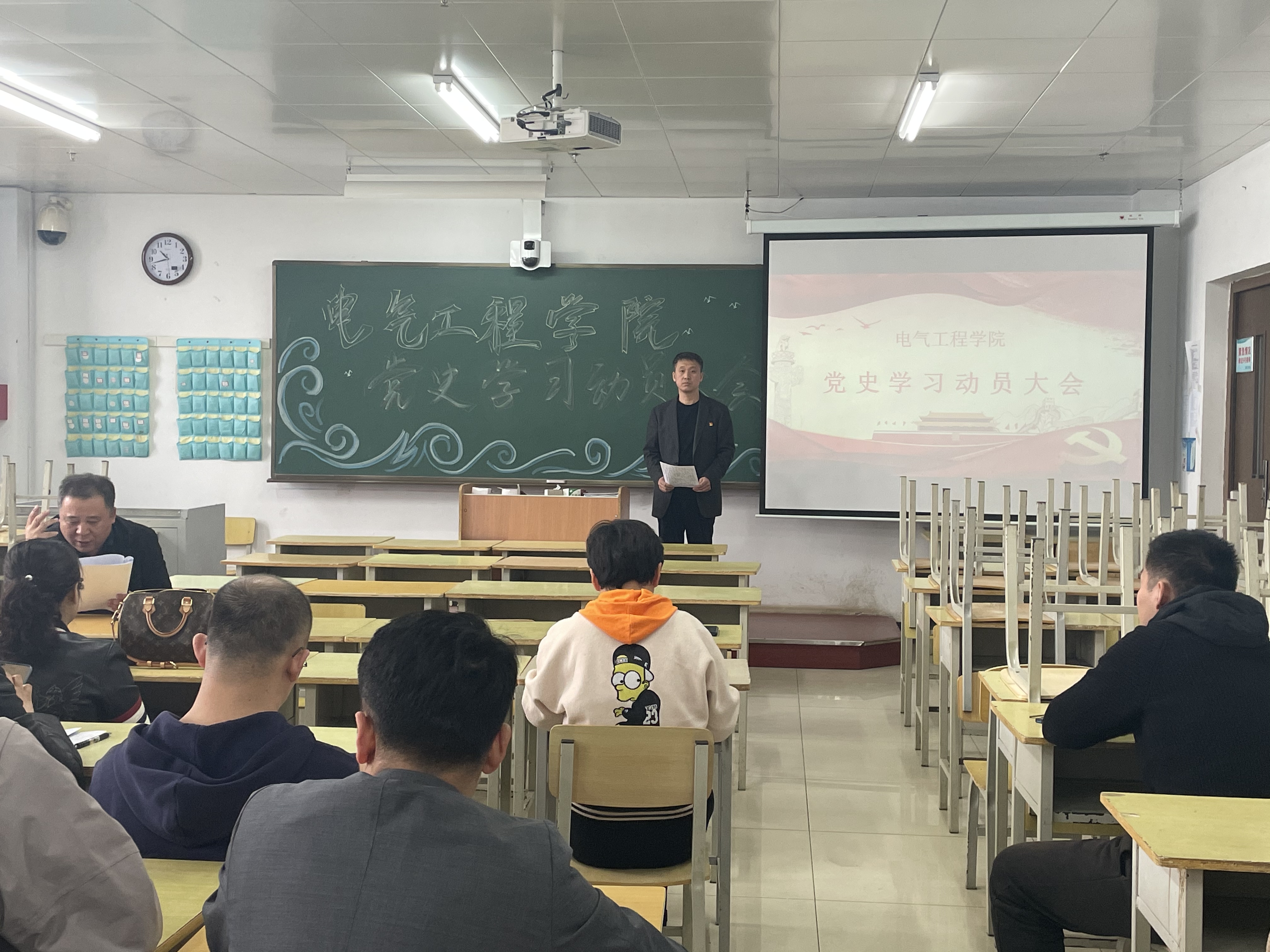 2021年4月23日,电气工程学院党总支在教学楼613召开党史学习教育动员大会。深入学习习近平总书记在党史学习教育动员大会上的重要讲话精神和学校党史学习教育动员会议精神,并对电气工程学院党总支全体教工党员开展党史学习教育进行总动员,会议由电气工程学院党总支书记刘振波主持,学院全体党员参加了动员大会。